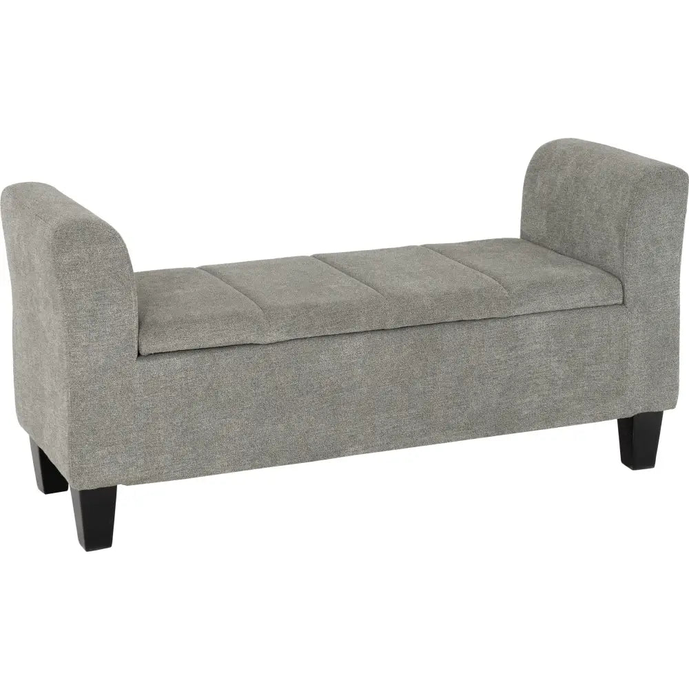 The Amelia Storage Ottoman offers space-saving convenience and style. Upholstered in a dark grey fabric, this ottoman features an assembled size of 1160mm wide, 410mm deep, and 540mm high so it can fit conveniently into any room. Perfect for storing books, blankets, and more.