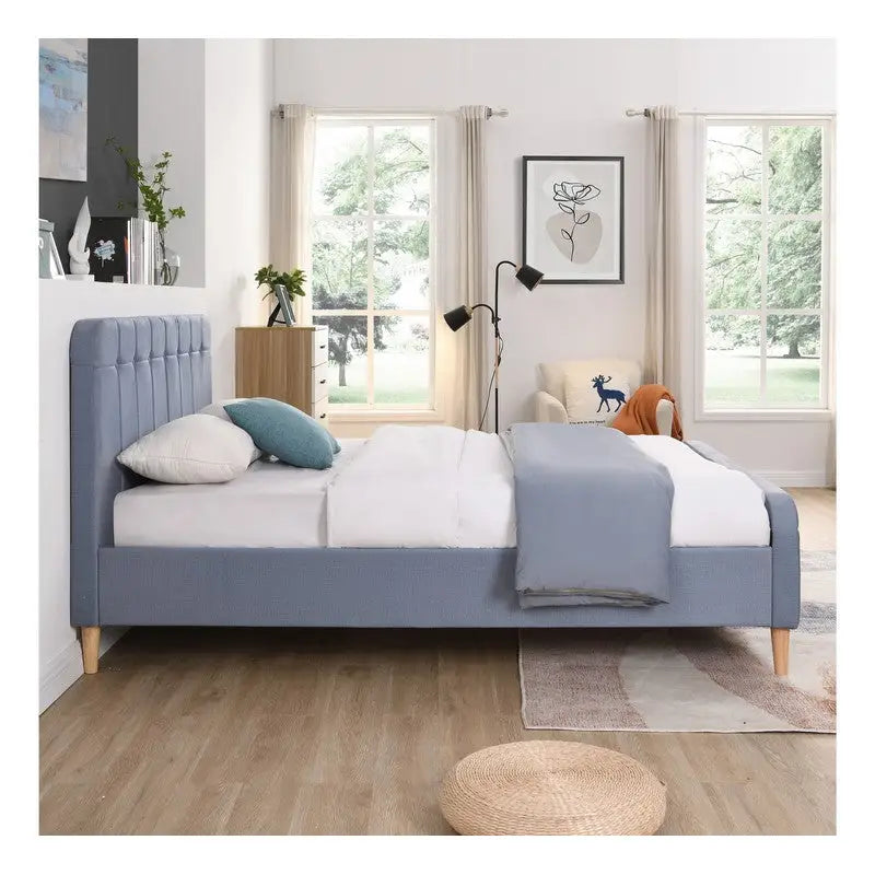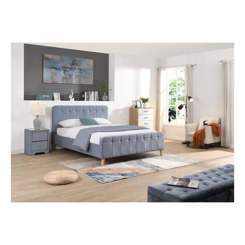 Experience the allure of the Ashley bed – a perfect fit for cosy spaces with a big style impact. Its compact size ensures snug comfort without compromising on style. Dressed in serene sky blue fabric upholstery, this bed exudes tranquillity and warmth. The soft, high-quality velvet fabric is both durable and easy to care for, promising lasting beauty. Supported by a sturdy frame, it guarantees long-term comfort and stability. Whether it's the focal point in a minimalist room or a vibrant accent in a neutral setting, the Ashley bed effortlessly merges function and aesthetics. Step into a world of modernity and relaxation with Ashley.