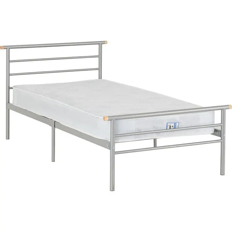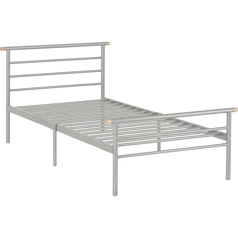 The Orion Metal Frame Silver Bed Frame is a sleek and sturdy option for any 3ft single bed. Crafted with a durable metal frame, this bed offers both style and durability. With its silver finish, this bed frame will add a modern touch to any bedroom. Upgrade your sleeping space with the Orion Metal Frame Silver Bed Frame.