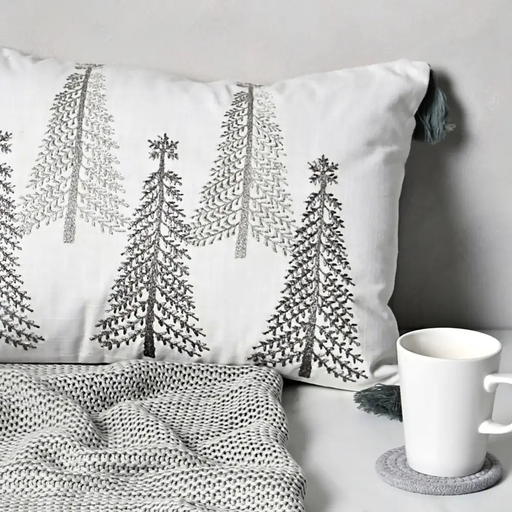 This stylish Rectangle Silver Tree Cushion with Tassles is perfect for adding a luxurious touch to your home décor. Crafted from quality fabric, the cushions feature intricate tassels and a silver tree print, perfect for your living room or bedroom.