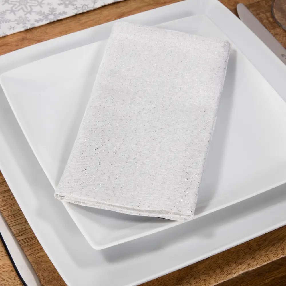 These luxurious Silver Glittered Lurex Napkins will add a touch of glamour to your table. Perfect for any special occasion, the napkins are crafted from fine material and feature shimmering glitter detailing. Set of 4 provides a complete look for a complete table setting.