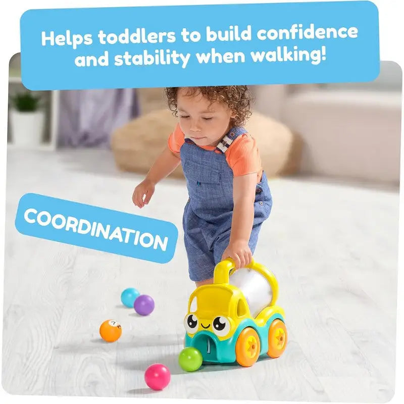 - EARLY DEVELOPMENT & ACTIVITY TOYS: Manoeuvring the push along toy improves fine motor skills. The colourful truck has a cute face with a front compartment where balls can be placed as drivers, encouraging creative pretend play.