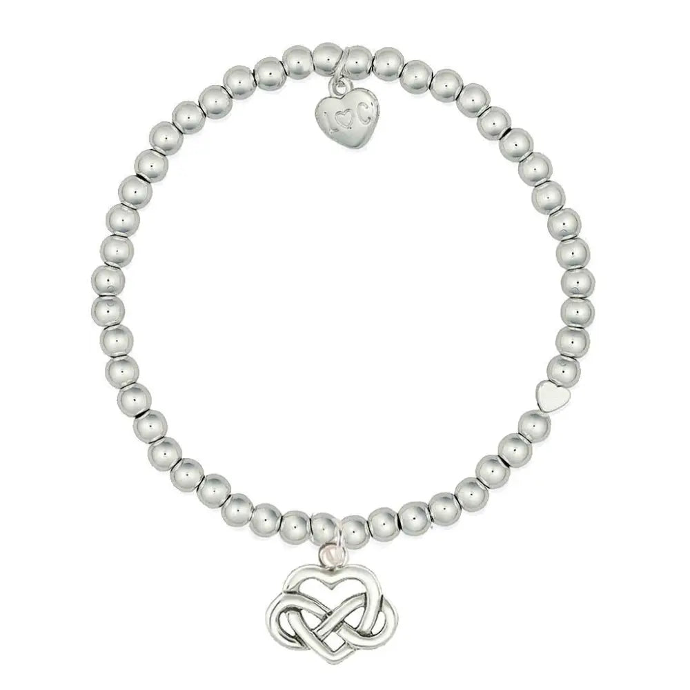 Modern pure silver plated  on a 5mm beaded stretch bracelet. The bracelet comes presented in a luxury gift box.