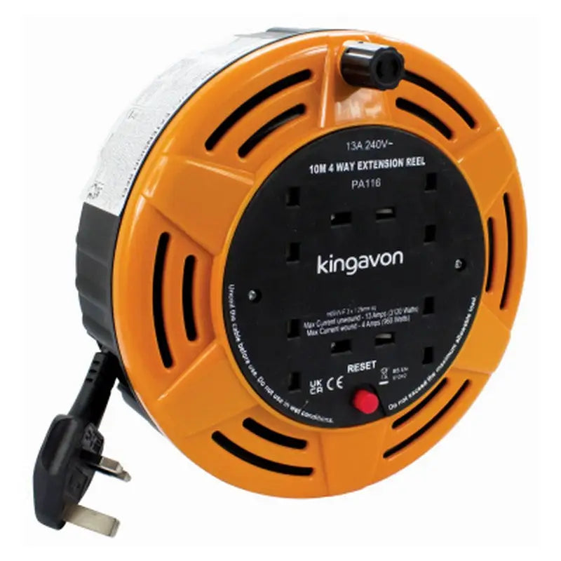 Experience the convenience of the Kingavon 4 Way 13amp Extension Reel Lead. With 4 outlets and a 13amp capacity, you can easily power multiple devices at once. No more searching for extra outlets or struggling with tangled cords. Say goodbye to inconvenience and hello to productivity.