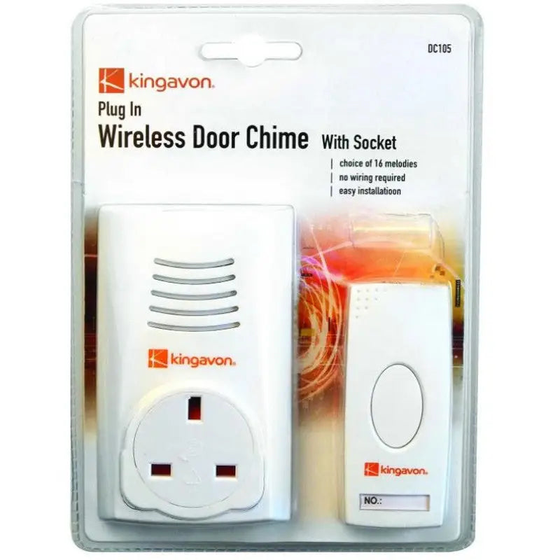 - Kingavon plug in wireless door chime is easy to install plug in digital door chime has a wireless range of up to 100m