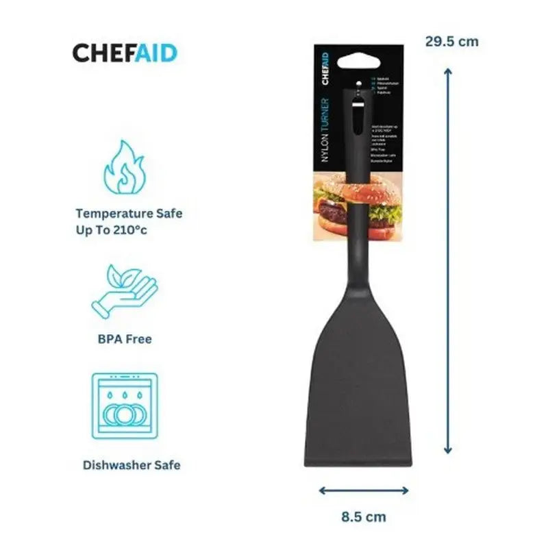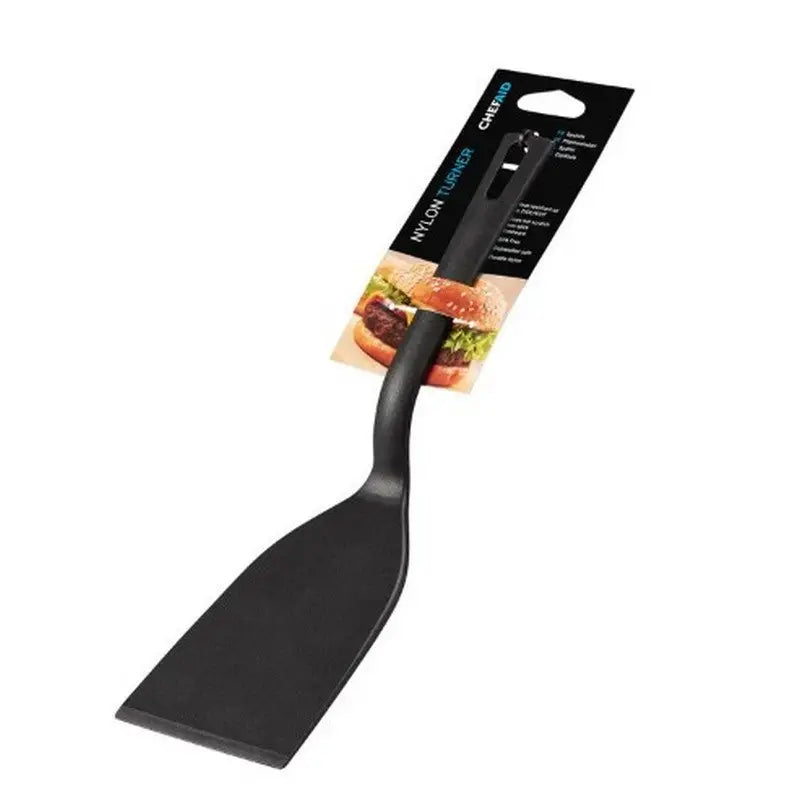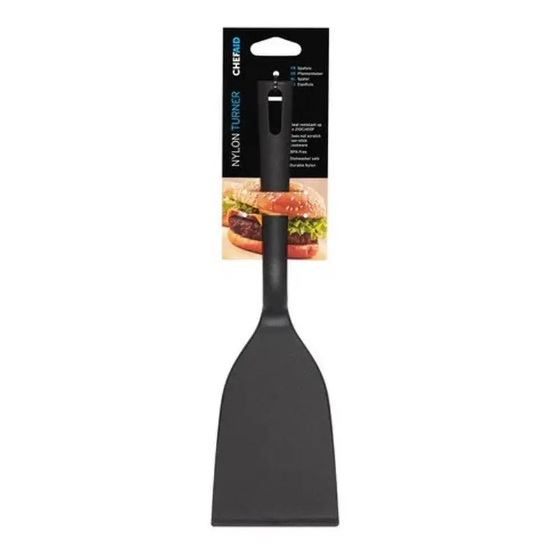 Upgrade your kitchen utensils with the Chef Aid Solid Nylon Black Turner. Crafted with durable nylon, this turner is perfect for flipping pancakes, burgers, and more. Its sleek black design adds a touch of sophistication to your cooking experience. Trust this turner to make your meals a success!