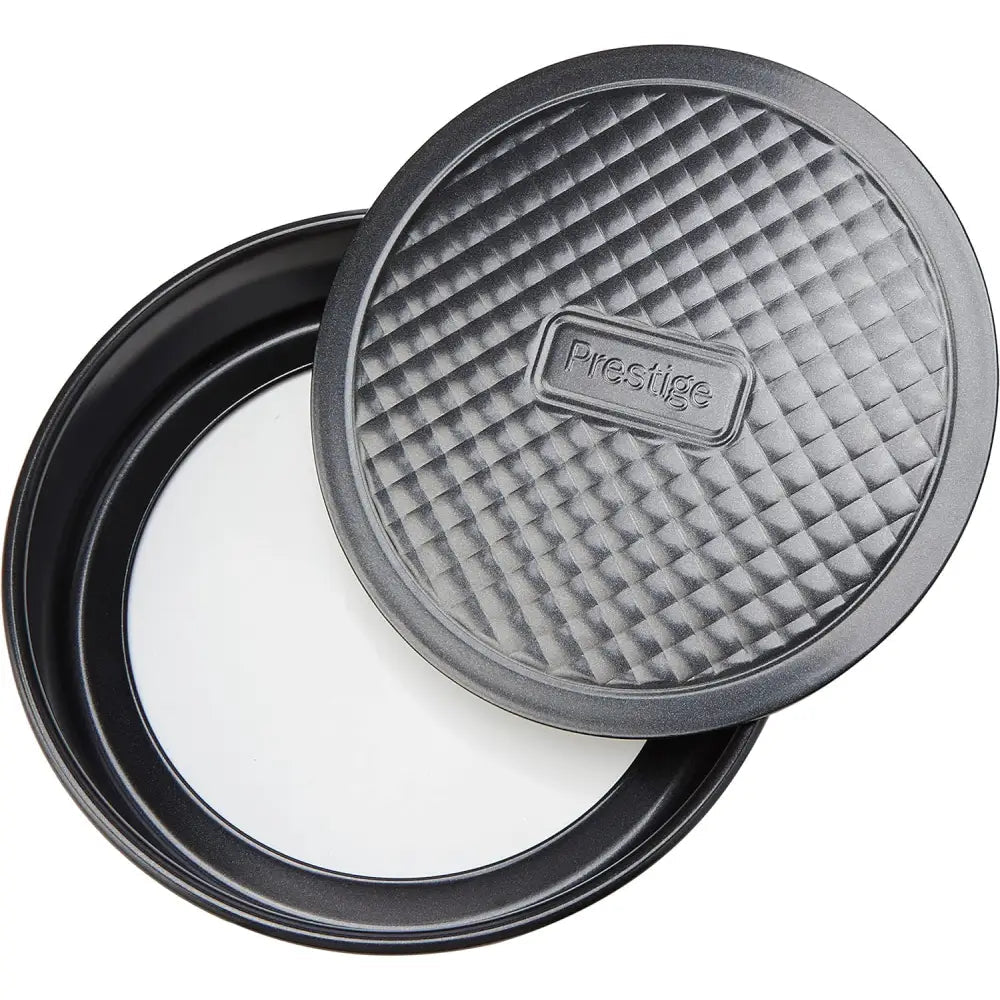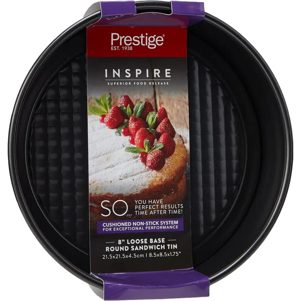 The Prestige Inspire 8'' Loose Round Sandwich Tin is perfect for baking and cooking, making it an essential addition to any kitchen. Made with heavy gauge steel for fast, even heat distribution, its non-stick interior and exterior mean simple cleaning. Its deep sides also ensure perfect cakes every time.