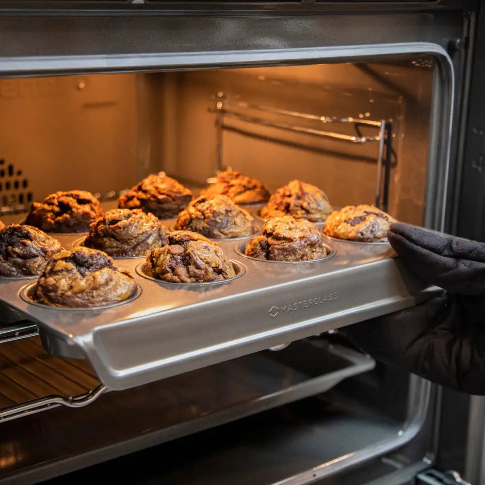 The MC Smart Stack Non-Stick Muffin Tray is a reliable and space-saving choice for your baking needs. Its 37x29x4cm size offers plenty of room for your creations, and an innovative Smart Stack design allows you to store it upright or nested with other pieces from the collection. Crafted for lasting use, the tray is covered by MasterClass' 20-year guarantee.