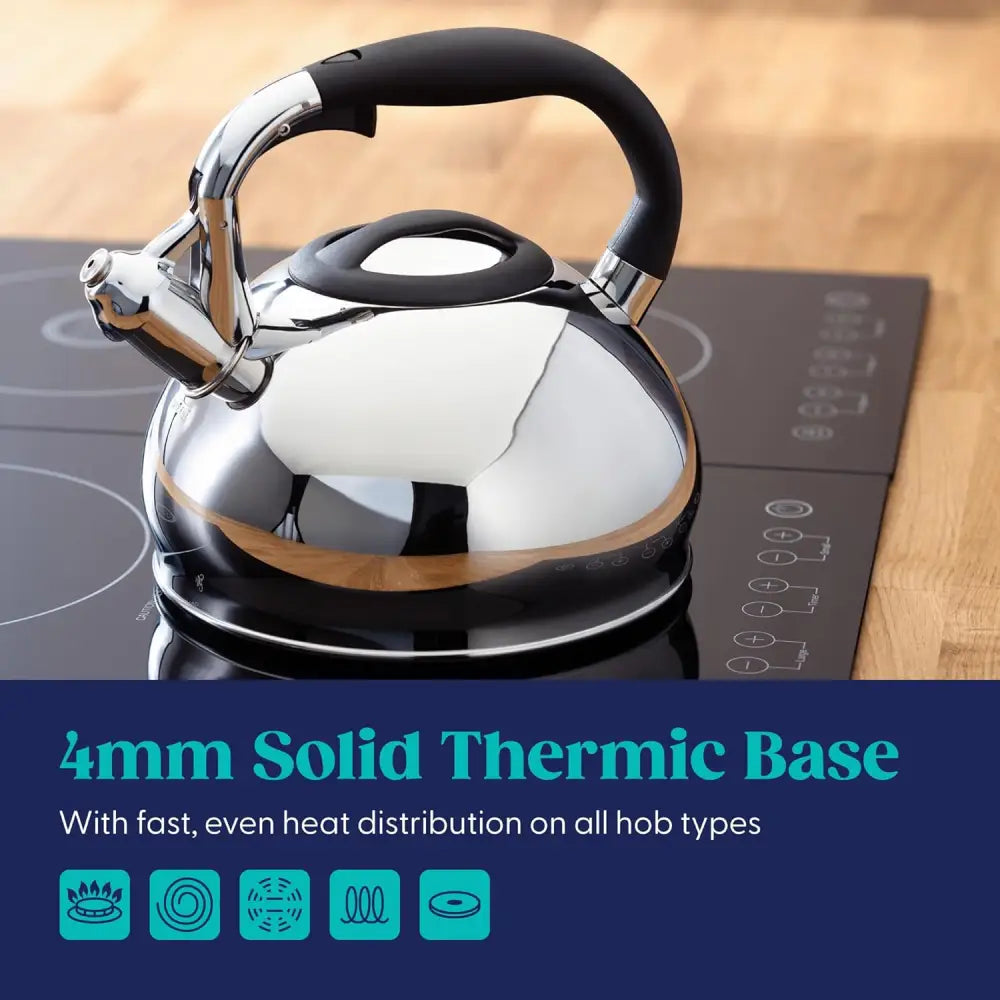 Experience the convenience and charm of the Judge Stove Top Whistling Kettle 3L JQ04. This sleek and functional kettle not only adds style to your kitchen but also alerts you with a delightful whistle when your water is ready. Enjoy effortless boiling and make your tea time even more enjoyable with this must-have kitchen accessory!