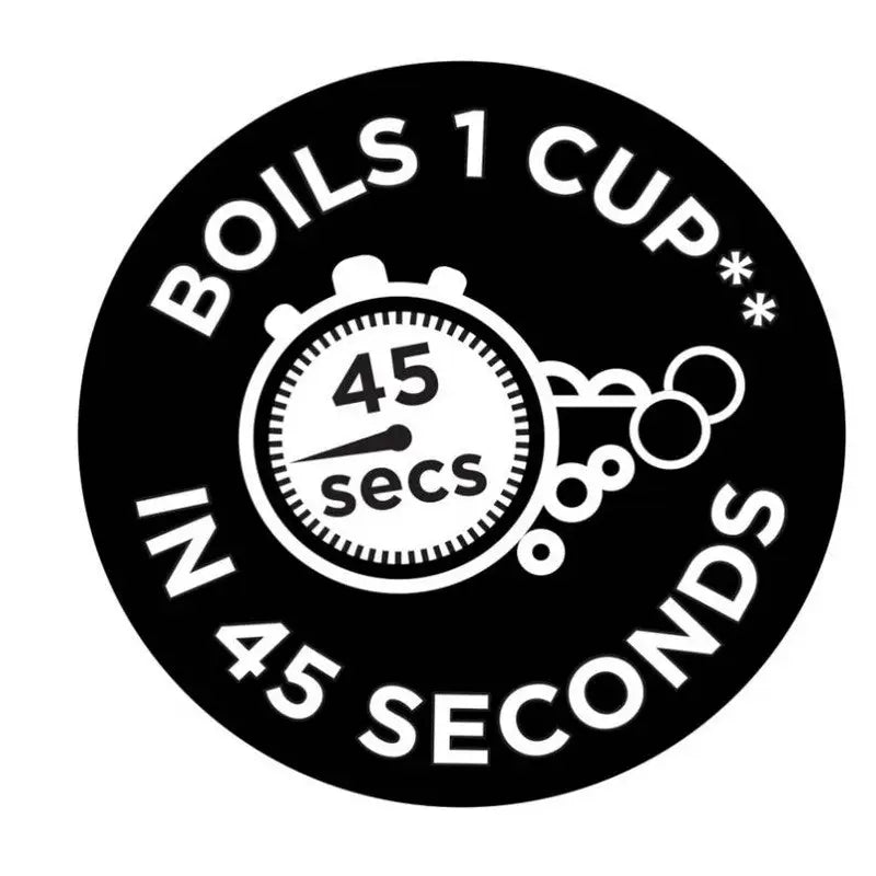 - Boil 1 cup (235ml) of water in 45 seconds.