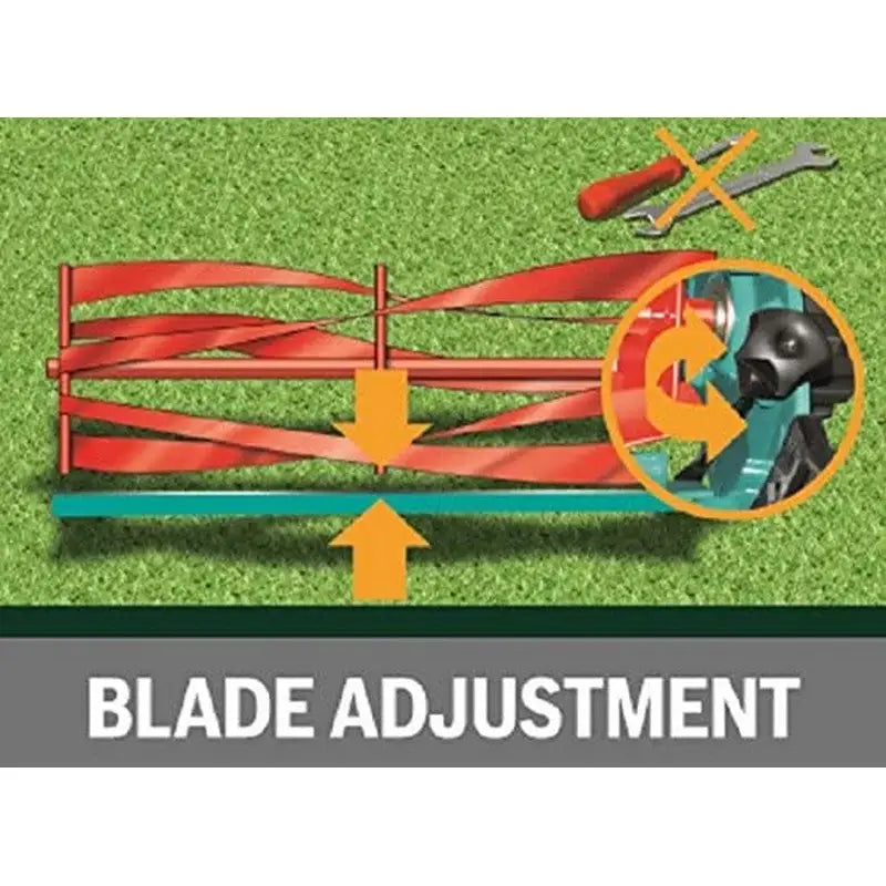 - Stepless cutting height adjustment and 38 cm cutting width. Height of cut: 12 €“ 40 mm