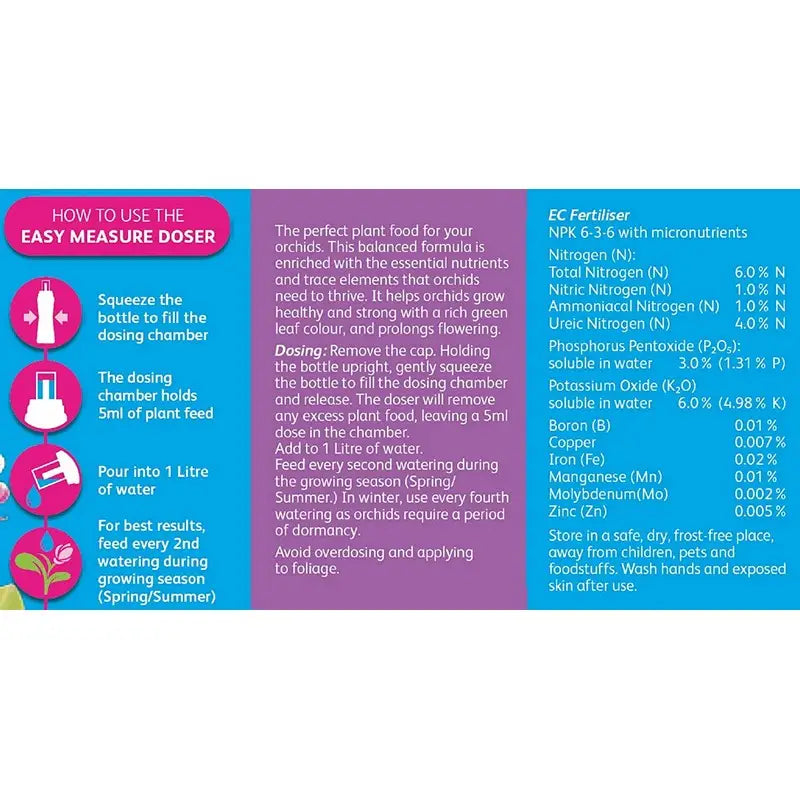 • Helps Orchids grow healthy and strong with a rich green leaf colour and prolongs flowering.