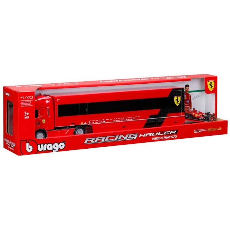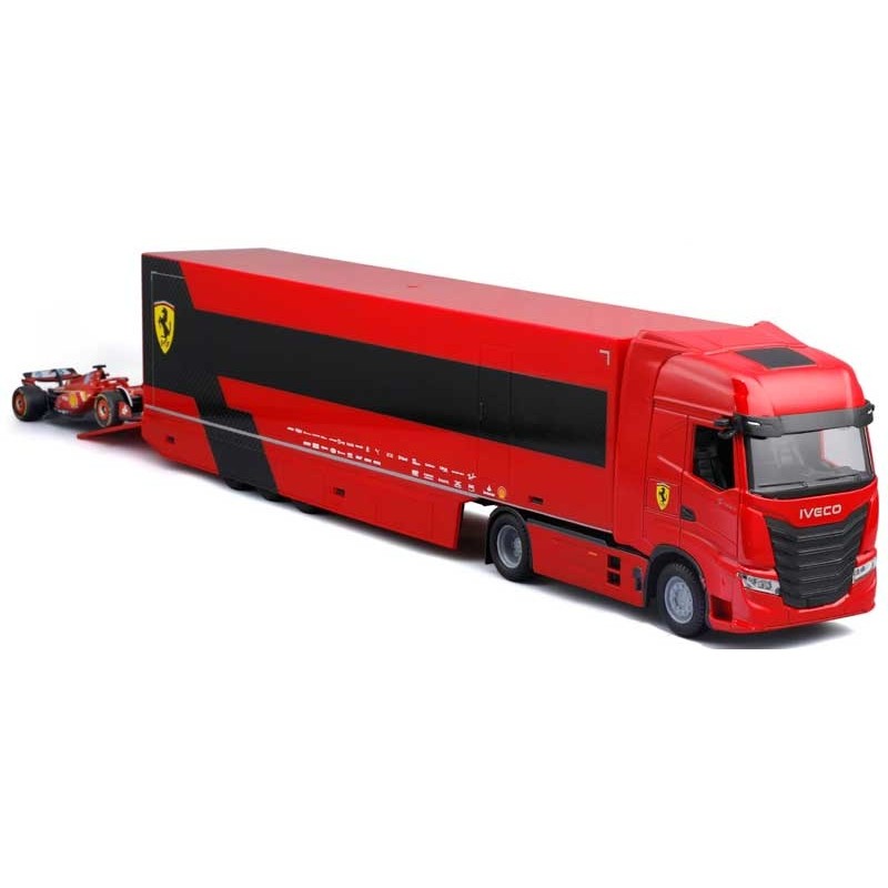 This stunning Burago 1:43 scale model captures the essence of Formula 1 glamour with meticulous detail. The set features an authentic Iveco S-Way 570 racing transporter paired with a Ferrari F1 car, perfect for collectors and enthusiasts alike. Each component showcases precision engineering and realistic finishing touches that bring the paddock to life. Whether you're building a motorsport collection or seeking a premium display piece, this dual-model set delivers exceptional value and authenticity that serious fans will appreciate.