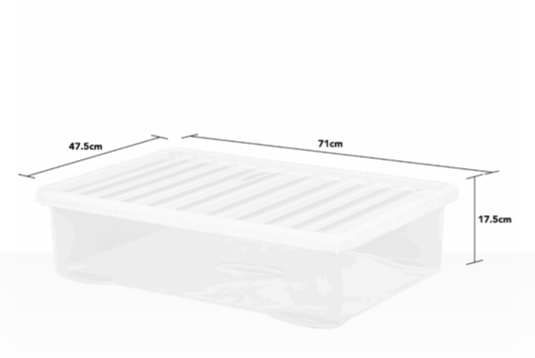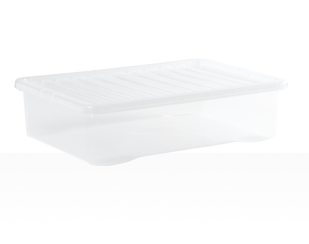 Maximize your storage potential with the Wham Crystal 46 Litre Under Bed Box & Lid. This spacious, transparent container slides effortlessly beneath your bed, keeping seasonal clothing, bedding, and personal items neatly organized and dust-free. The secure-fitting lid protects contents from moisture and pests, whilst the crystal-clear design lets you quickly identify what's stored inside without opening it. Durable, stackable, and built to last, this practical solution transforms wasted under-bed space into valuable storage. Perfect for decluttering bedrooms and creating a tidier, more organized home.