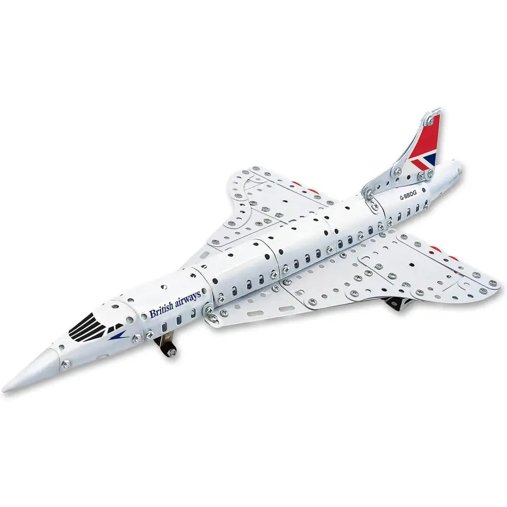 This 269-piece Metal Construction Set allows you to build the iconic Concord with detailed pieces and tools. Constructed with real metal pieces, this set provides a realistic and sturdy building experience. Enjoy the challenge of designing your own vehicle, while having fun and mastering building skills. A must have for Aircraft fans and those who enjoy building.