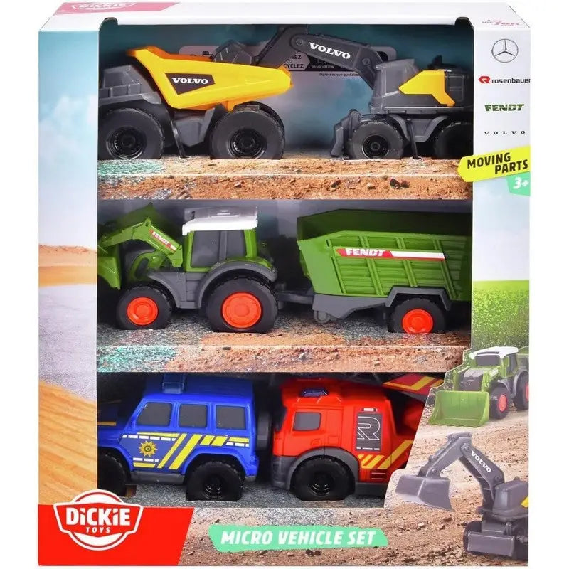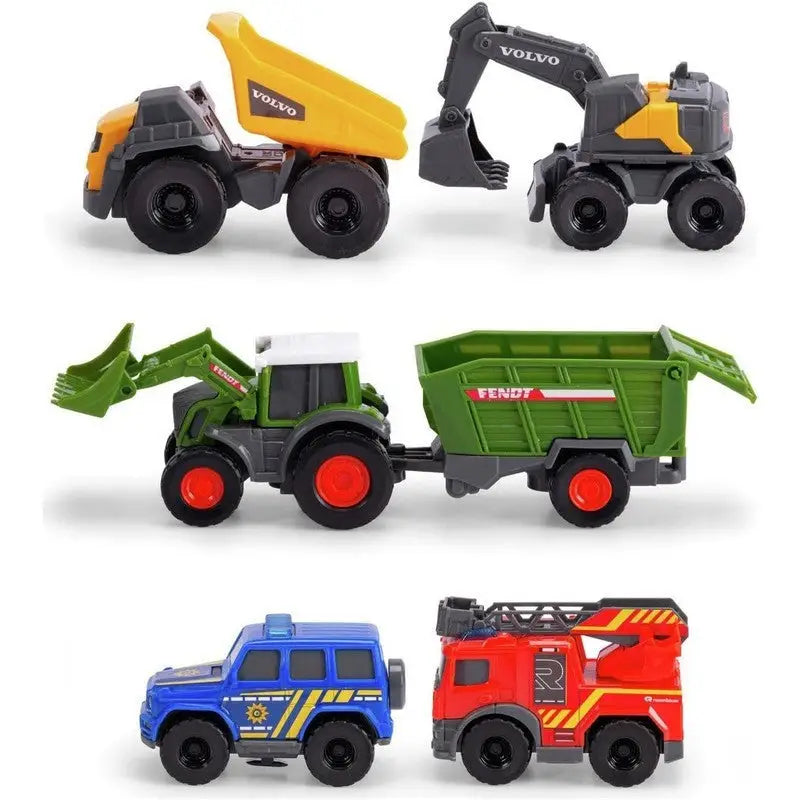 Dickie Toys Micro Vehicles 5-Pack - (Police, Fire Brigade, Excavator, Tractor & Trailer)