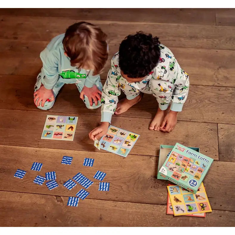 Our Farm Lotto Game is the perfect early learning matching game for young players. Including 4 sturdy farm playing boards and 36 picture cards, this fun family game features Tractor Ted and his real life farm friends including Farmer Tom and Midge the dog! Aim: Share the 4 boards between the players. Be the first to collect all your picture cards and complete your board!