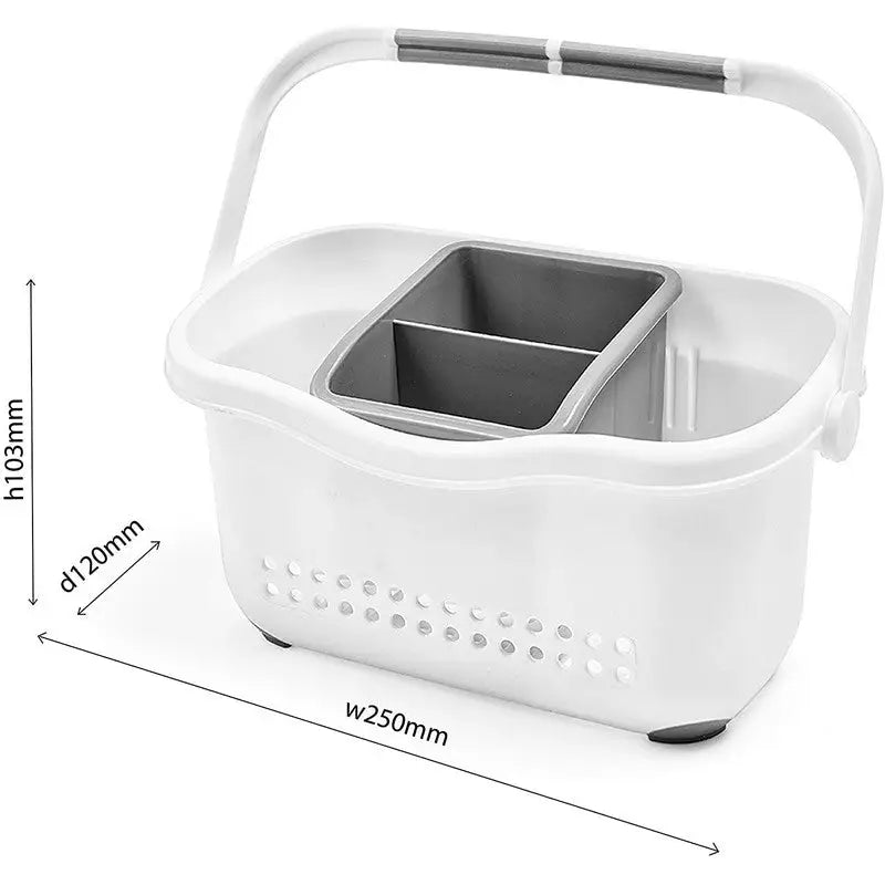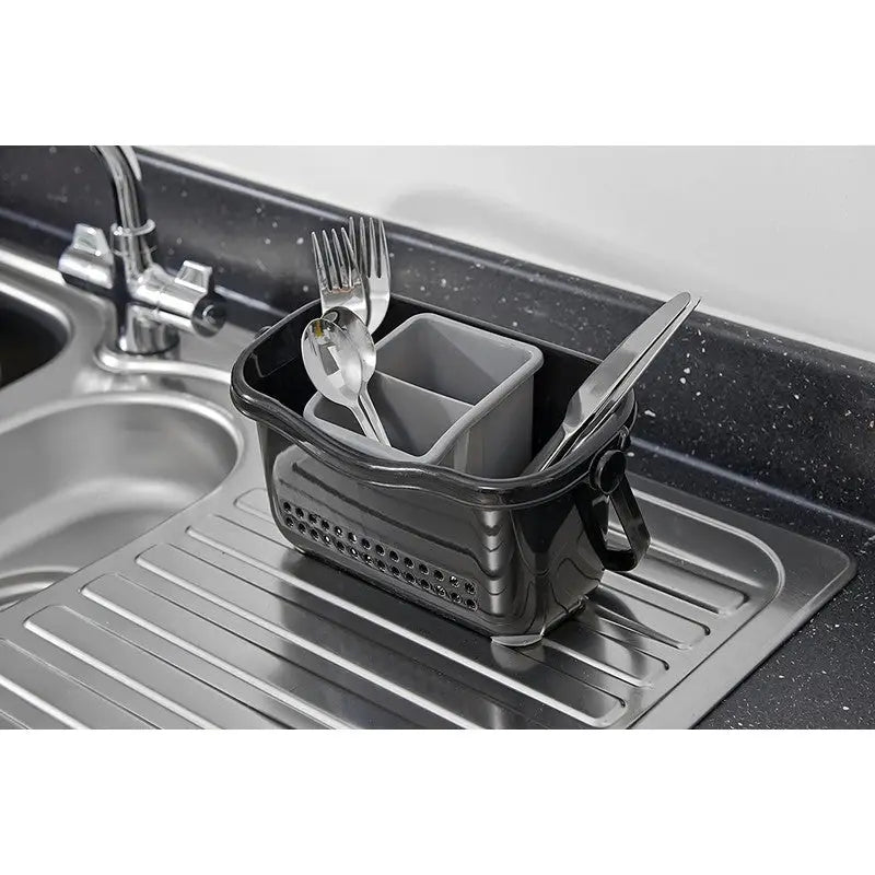 Organises sink utensils Can be used for both cutlery or cleaning chemicals/ equipment. Non-slip feet The handle can be opened in an upright position ideal for drying your dish cloth air-holes