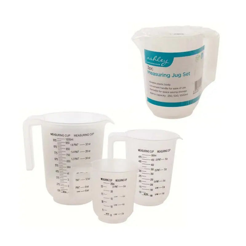 The Ashley Homewares Plastic Measuring Jug 3-Pack is a valuable addition to any kitchen, offering convenience, accuracy, and versatility when it comes to measuring ingredients for a wide range of recipes. Whether you're a seasoned chef or a home cook, this set of measuring jugs can help make your cooking and baking tasks more efficient and enjoyable.
