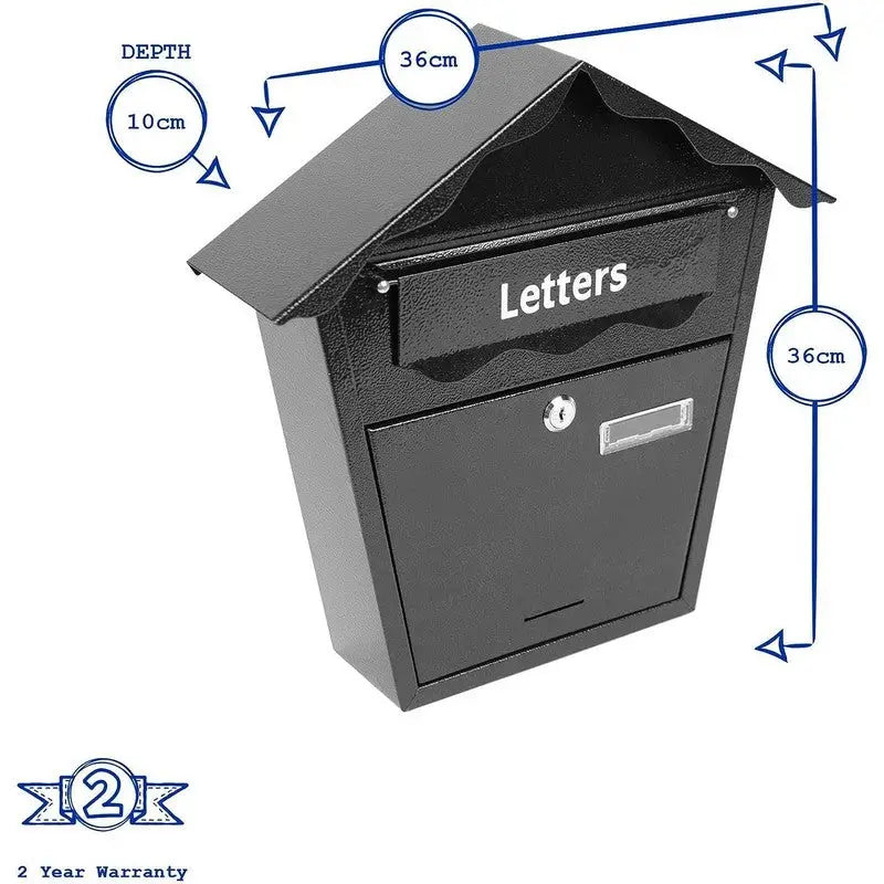 - This steel plated mail box is manufactured with a black finish & comes complete with wall fixings & 2 keys.