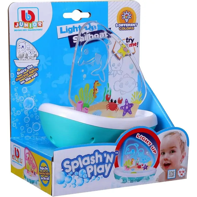 Watch your little one experience the thrill of the open sea with the BB Junior Splash N Play Light Up Sailboat Toy Blue/White. This playful sailboat lights up and makes sound to inspire hours of imaginative play. It's an ideal way to teach children about nautical life.