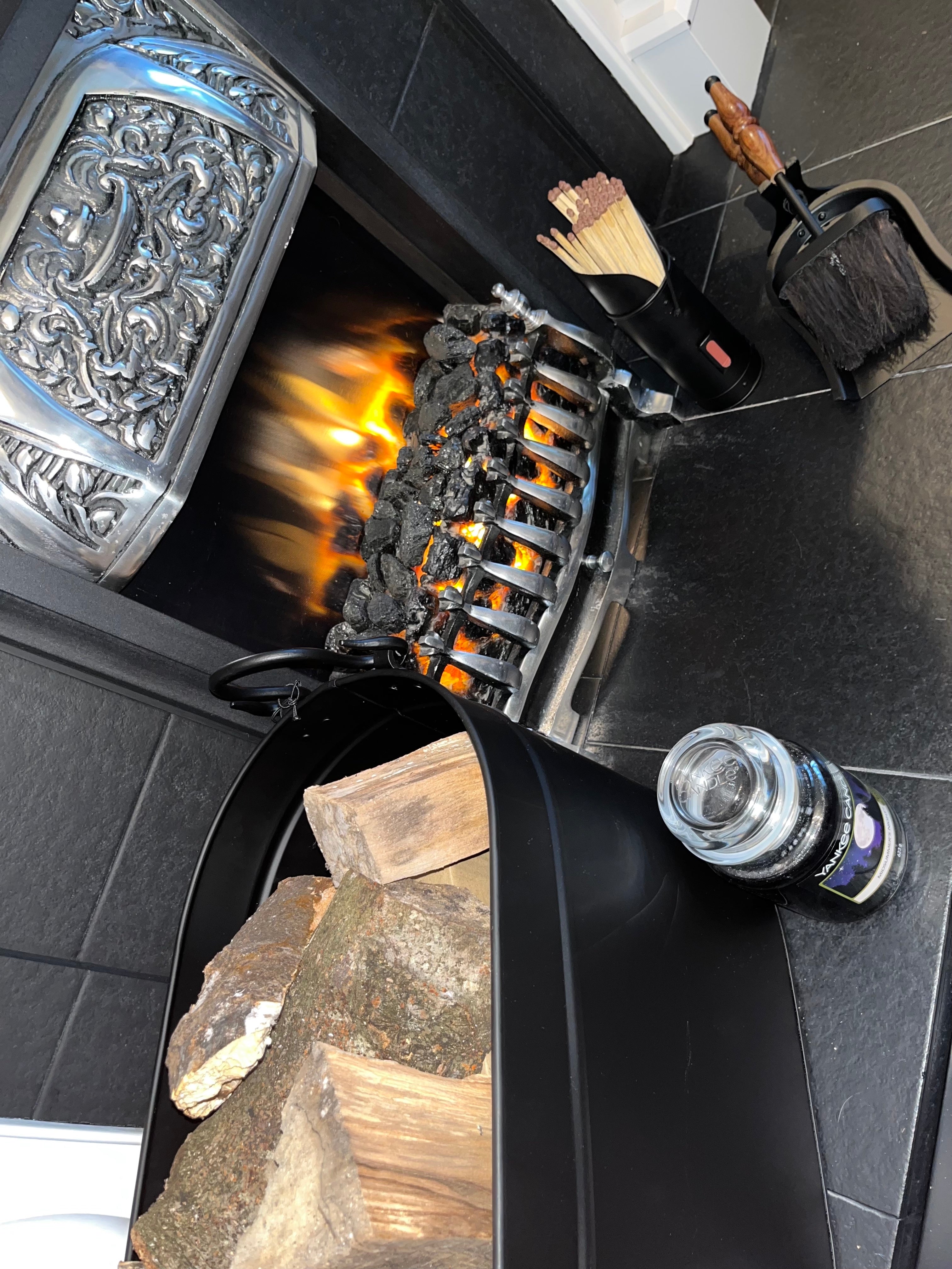 Trendy fireside black  log bucket. Measuring:  52X31X30CM.
