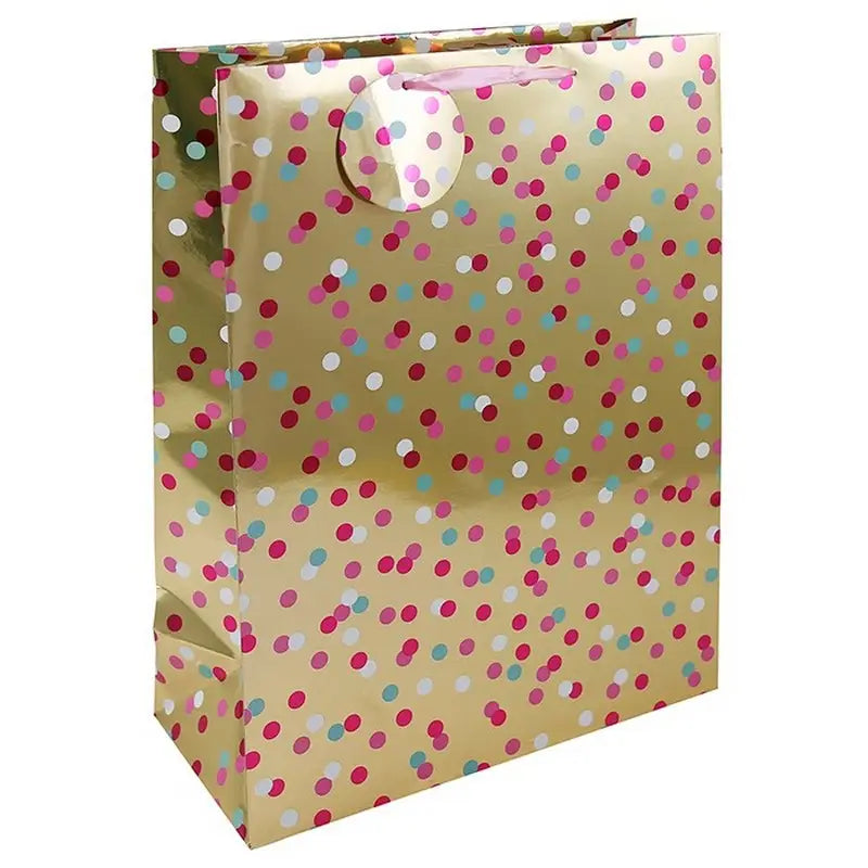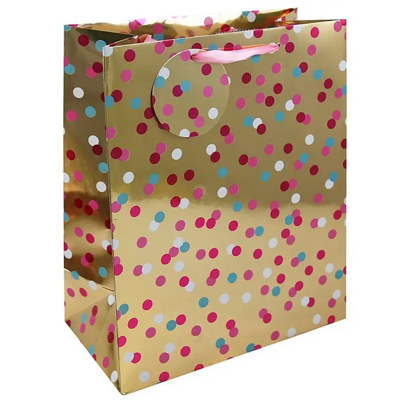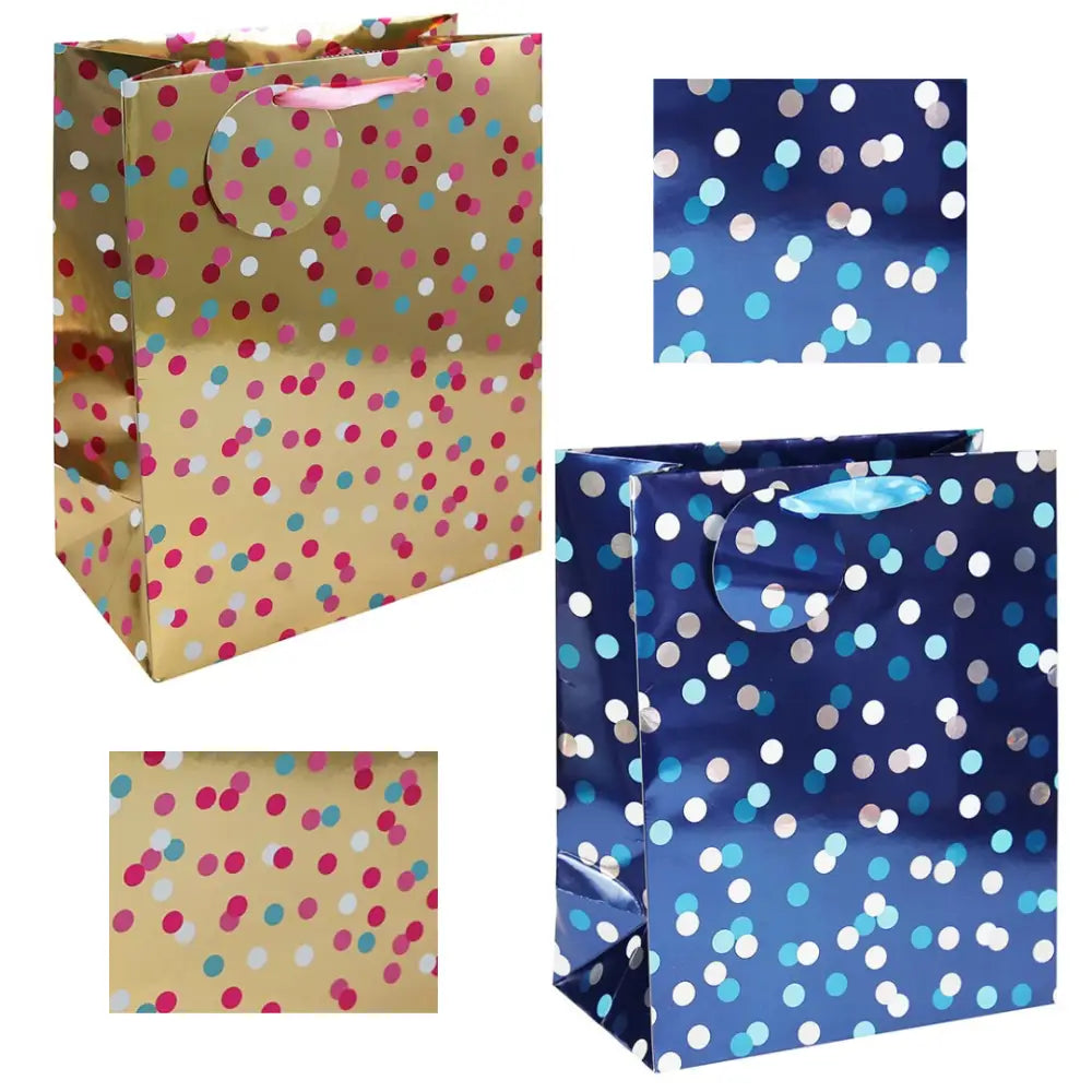 These gift bags are the perfect way to add a pop of color to any gift-giving occasion. Each bag is made of durable, high-quality paper. Available in three different sizes: medium, large, and extra-large. Blue Spots Available & Pink Spots Available.