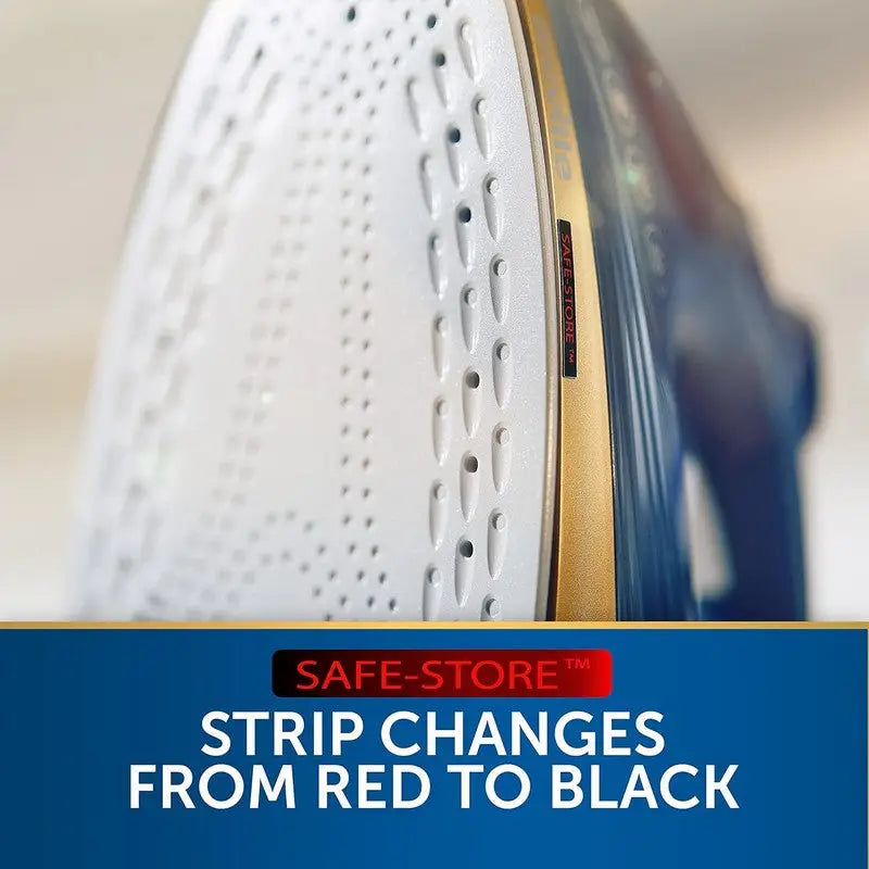 - Safe-Store heat indicator shows you when your iron is cool enough for storage and handling for extra safety