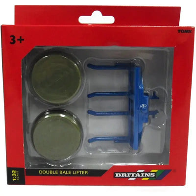 - DOUBLE BALE LIFTER: Use the tractor toy accessory to hitch up and transport the two included bales around the farm. Once in the field press the button to drop the forks and release the bales