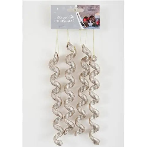 Enchante Champagne Sparkle Spiral Hanger 4Pk Bauble