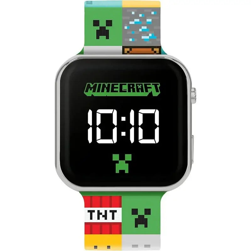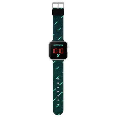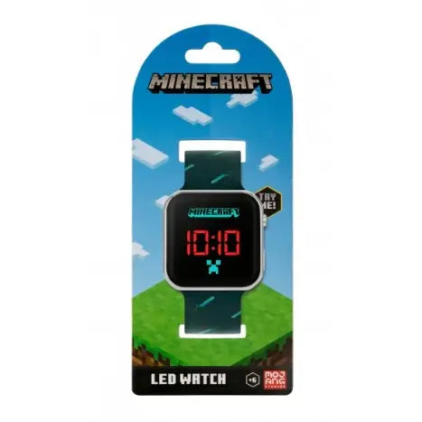 Minecraft watch with Minecraft design dial, plastic casing, blue digital display and fun sword printed blue strap with traditional buckle fastening. Packaged in official branded packaging and comes with one year guarantee. This is the perfect piece to take you from day to night.