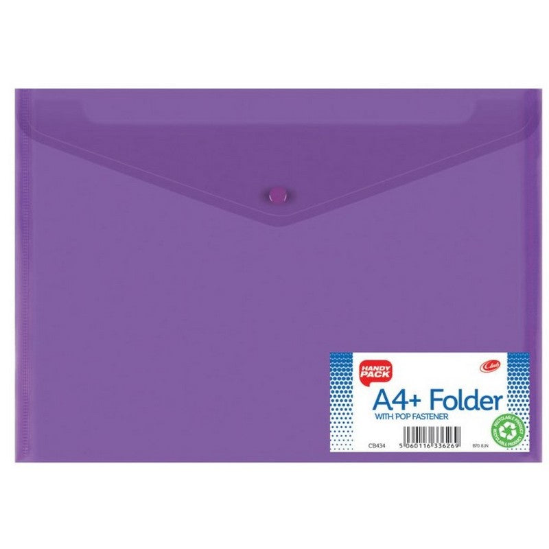 Keep your documents organized and secure with the Club Handy Pack A4+ Folder. Featuring a pop fastener and a variety of vibrant colours, this folder is perfect for professionals and students alike. The A4+ size provides extra room for larger documents, while the durable design ensures long-lasting use.