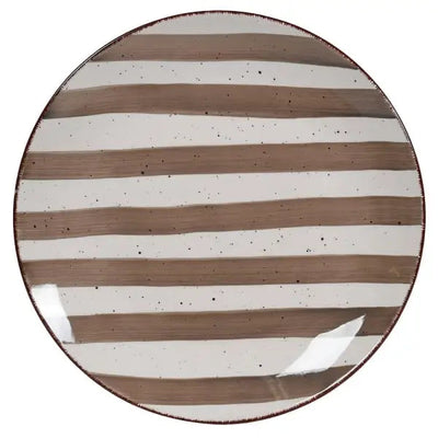 This hand painted stoneware dinner plate makes a great everyday serving option as well as when entertaining guests. With a textural stripe pattern, these are sure to bring practicality combined with style to your dining space.