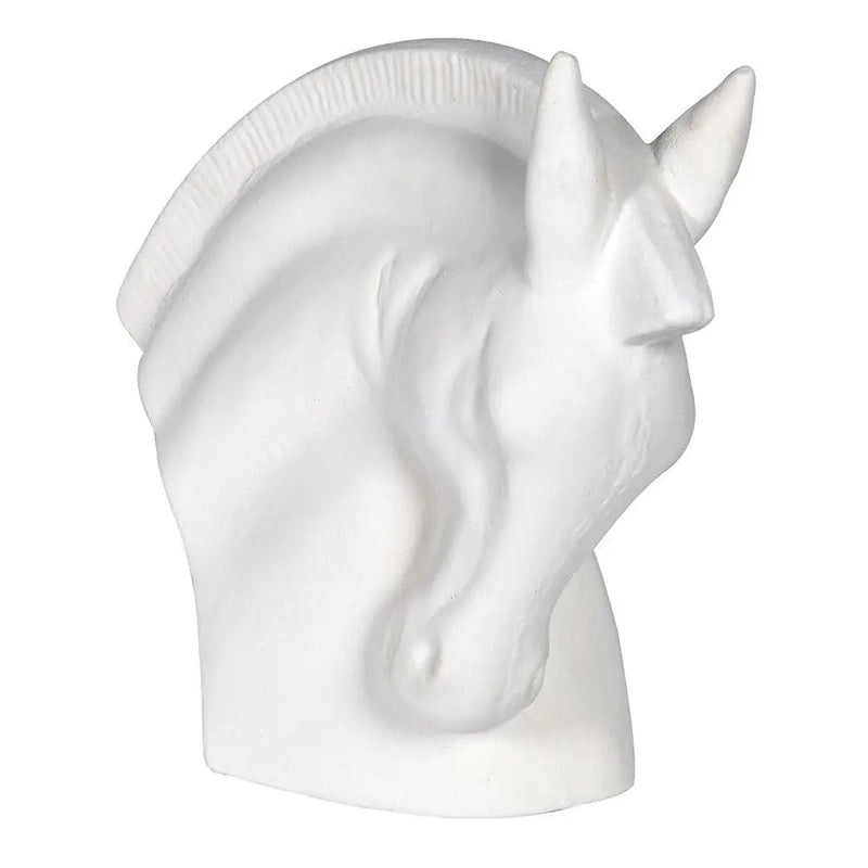 White Horse Head sculpture is crafted from sturdy resin and is ideal for any room. It features a realistic design with accurate details and measurements of 36cm high, 37cm wide and 15.5cm deep. Its elongated neck makes an eye-catching statement, while its neutral colour scheme ensures it matches any existing decor. Perfect for the home or office.