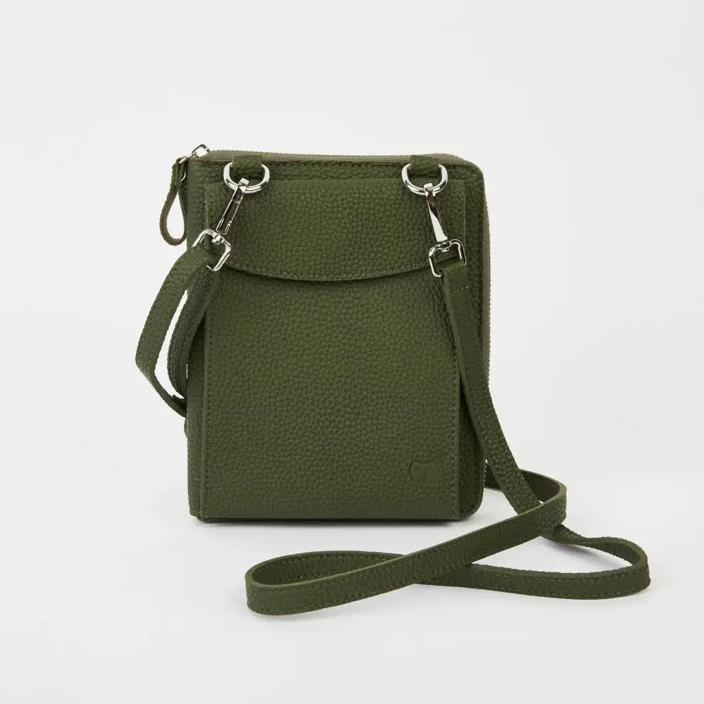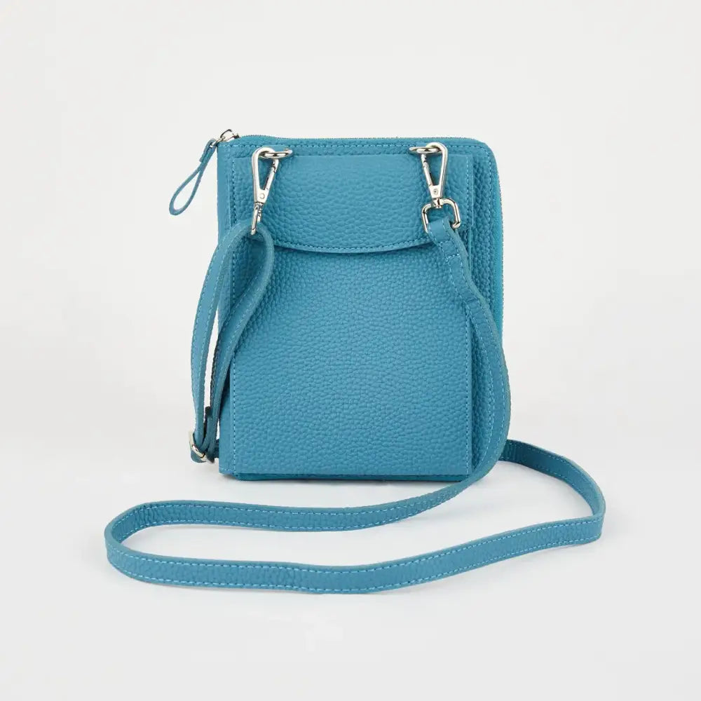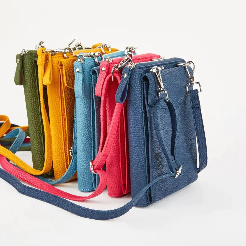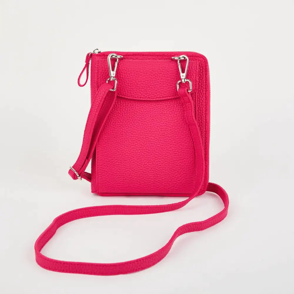 The Columbian Cross Body Bag is crafted from soft grain PU and tested to fit an iPhone Pro Max. It has a slimline design and an adjustable, detachable strap. The zip-around purse includes 6 card slots, a slip pocket, and a single main compartment. Measurements: 16 cm x 17 cm x 4 cm (including the front pocket).