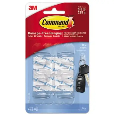 Securely hang lightweight items with Command Micro Mini Hooks. This set of 6 hooks supports up to 225g each and has a damage-free adhesive to attach to walls without nails. Perfect for organizing small accessories.