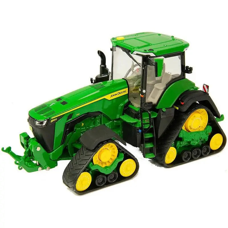 - JOHN DEERE 8RX 410: Weighing over 800 gms each track turns on its freely rotating drive wheel and idlers and the front tracks are also steerable. Theres a working metal front linkage and glazed headlights in the bonnet