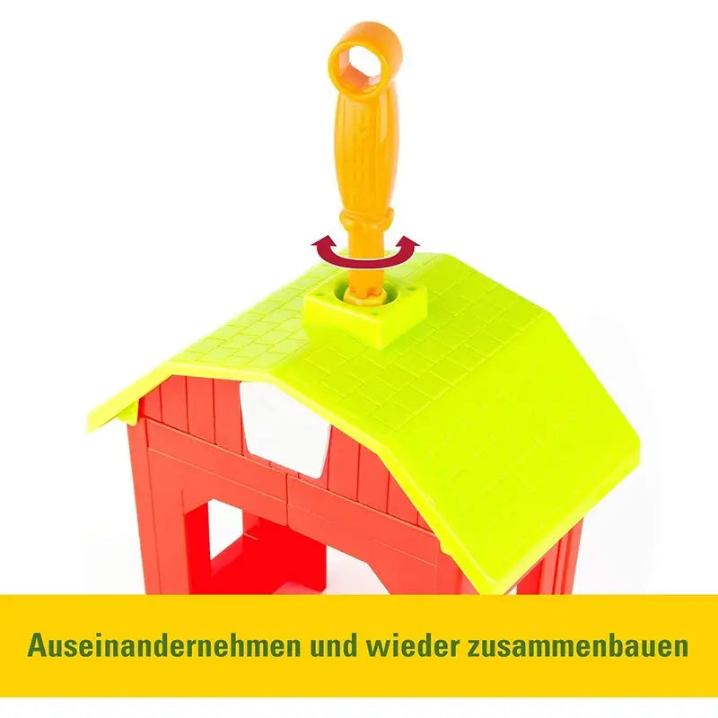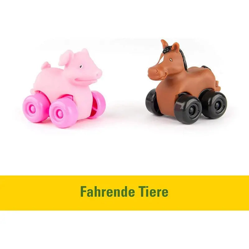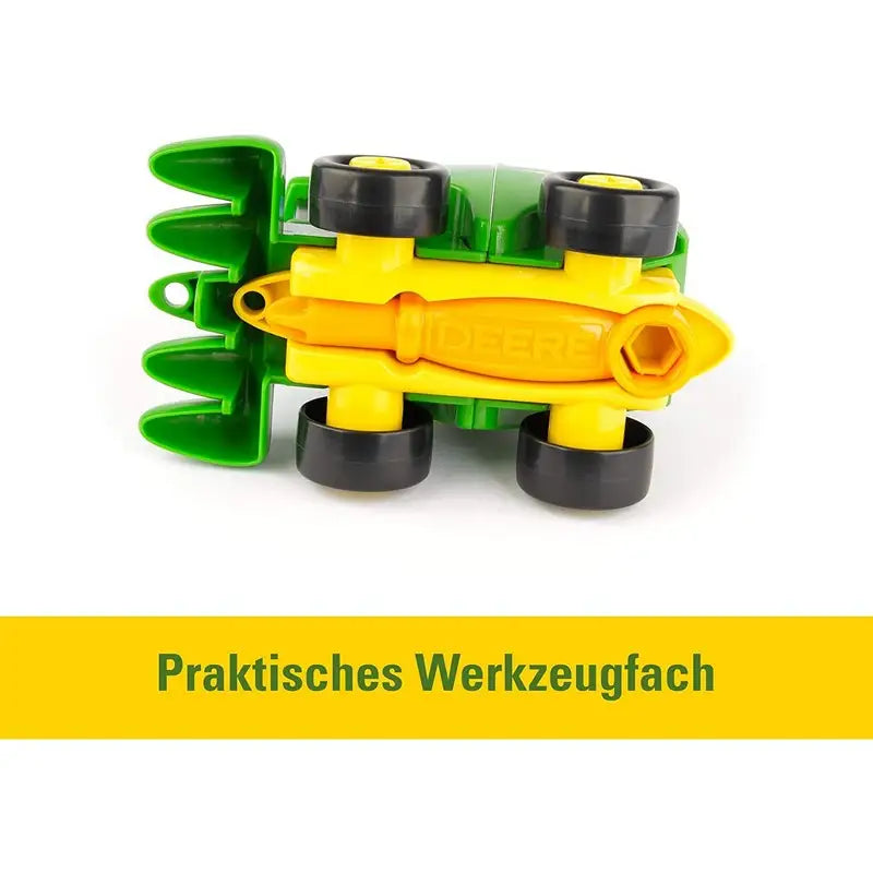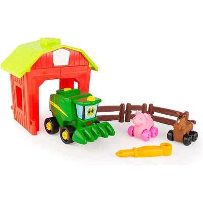 - John Deere farm toys: Introduce baby to farm play with this fun John Deere Build-a-Buddy Corey toy tractor set. This take-apart toy includes a horse and pig on wheels who love going for a roll too and a barn and fencing to help keep them safe