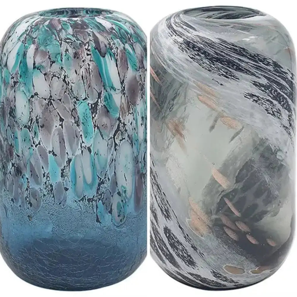 Introduce a touch of elegance to your decor with our Vincenza Mottle Glass Vase. Crafted from high-quality glass, this vase adds a modern yet timeless appeal to any room. Its sleek design effortlessly complements any floral arrangement, making it a perfect centrepiece for your home. Available in blue or grey design.