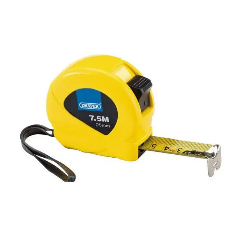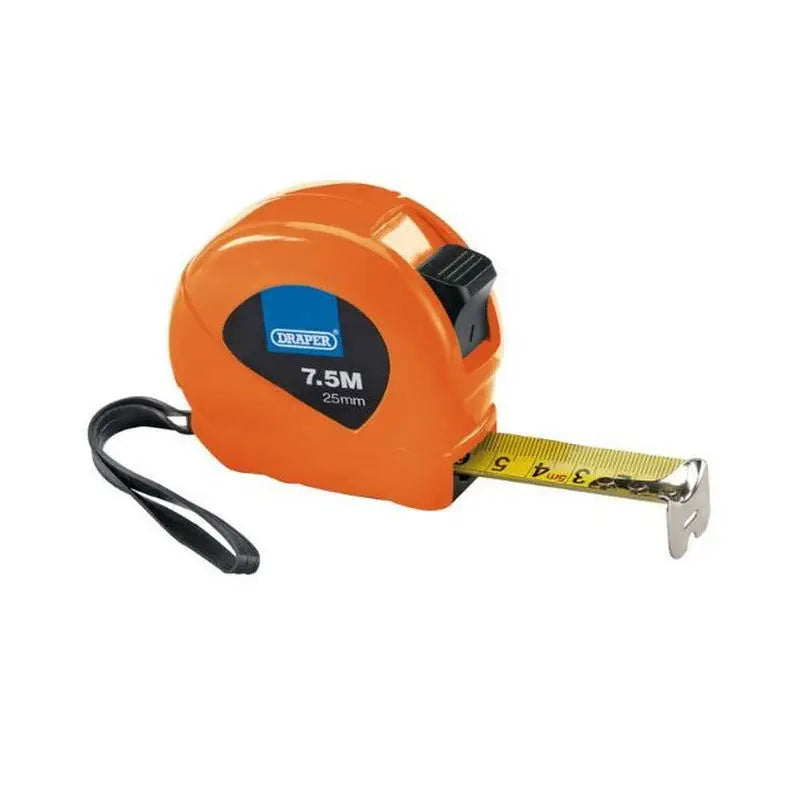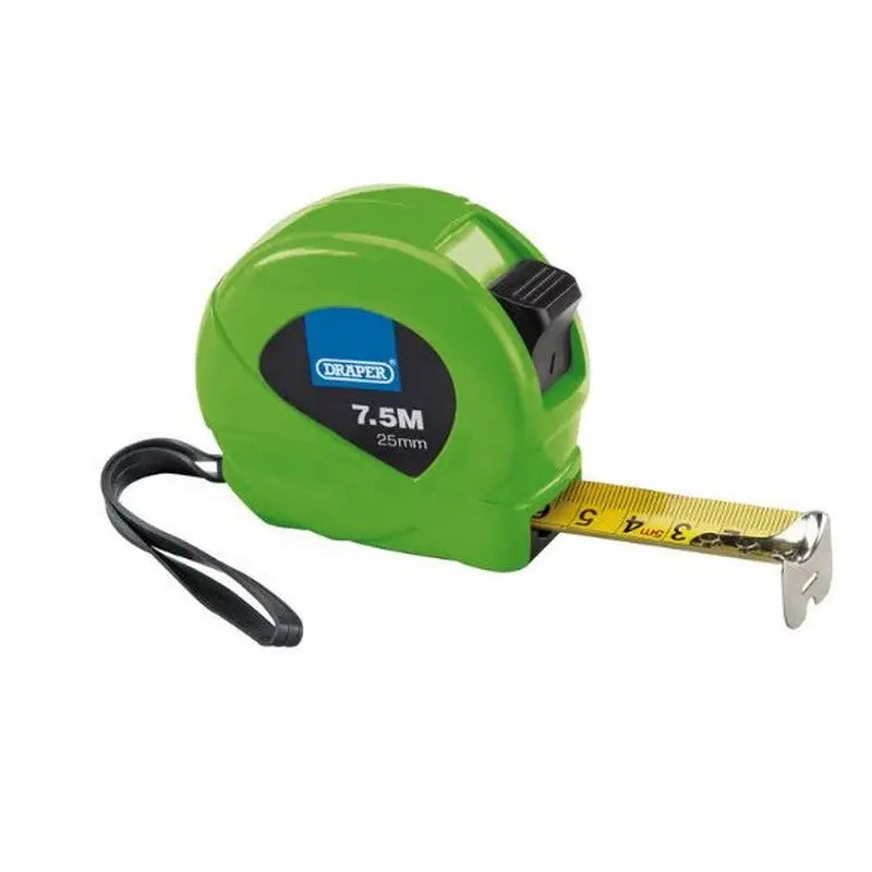 This Draper Hi-Vis Tape Measure offers quality and accuracy with its 7.5m Length / 25mm Width. Comes in three assorted colours for easy identification - great for the jobsite! Easy to read metrics and imperial measurements make this an essential tool.