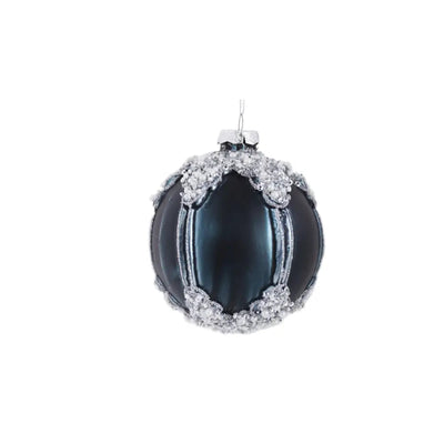 This 10cm glass blue opaque bauble is ideal for creating a festive atmosphere. It's encrusted with silver glitter for a touch of sparkle and is the perfect addition to any Christmas tree.