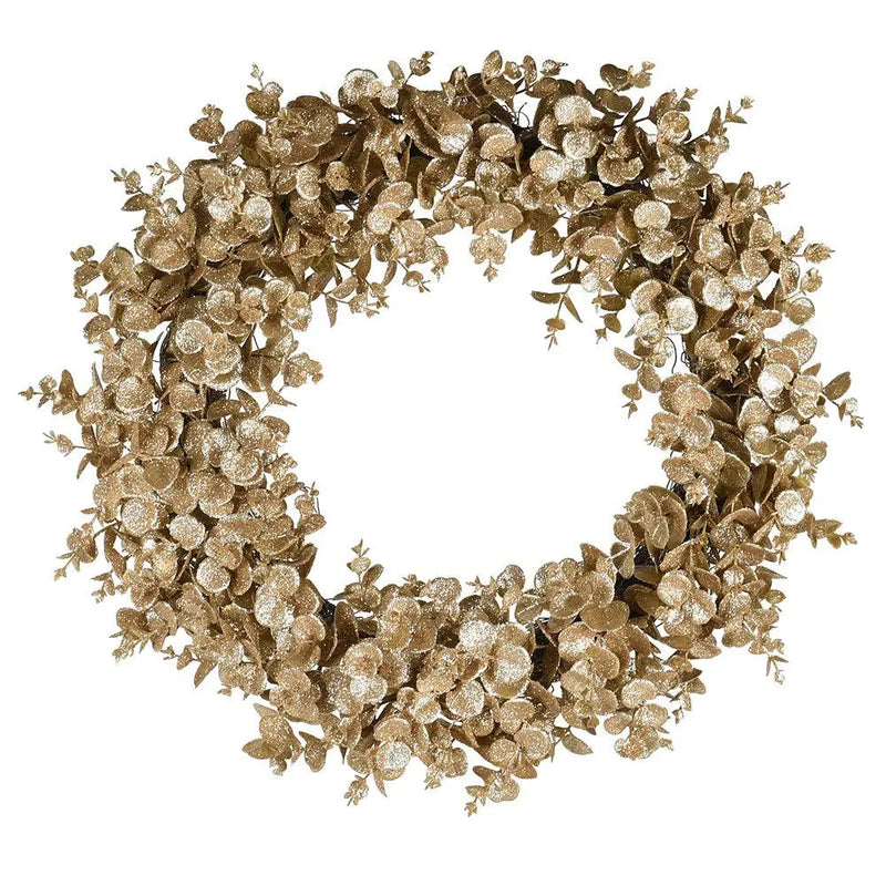 This Gold Eucalyptus Wreath is the perfect decorative accent for your home. The lush, gold foliage is sure to bring a touch of faux nature to your living space. Expertly crafted from high-quality materials, this robust wreath will bring a lasting touch of beauty to your home.