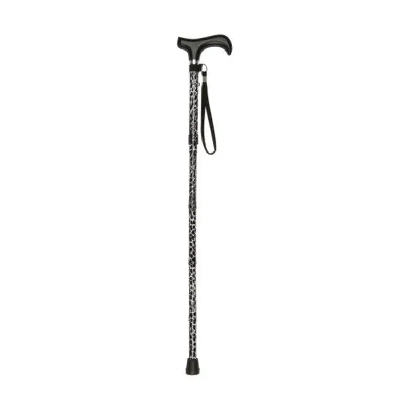 The aluminium walking stick is strong and lightweight and features a comfortable plastic derby-style handle.