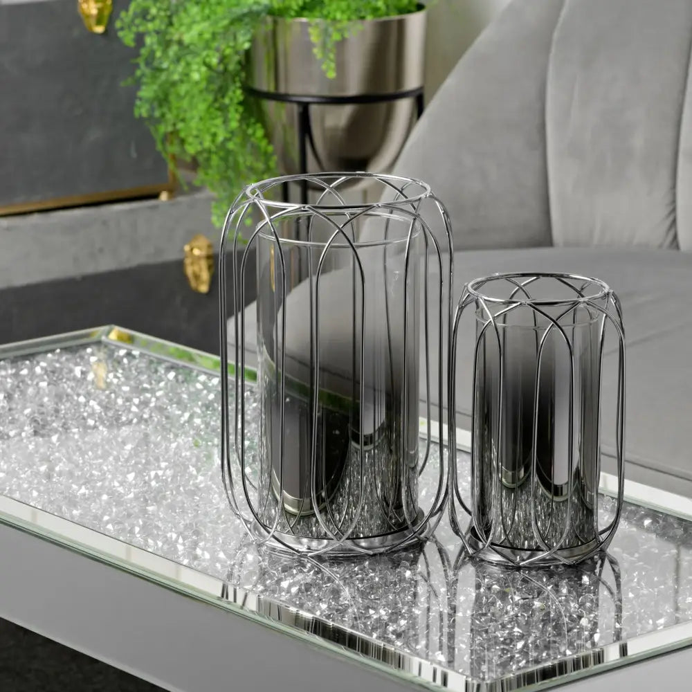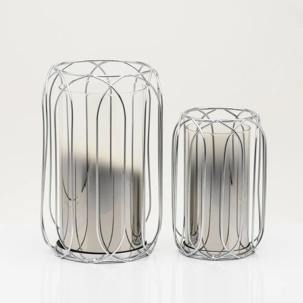Hestia Silver Ombre Lantern Candle Holder - 19.5 / 26cm