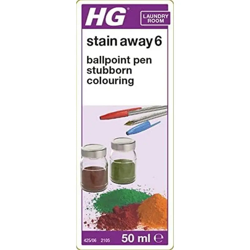 Remove stubborn stains with HG Laundry Room - Stain Away No.6 50ml. This powerful formula tackles ballpoint pen, coloring, and even beer and liqueur stains. Perfect for your laundry room, it will leave your fabrics looking clean and fresh. Say goodbye to tough stains with HG Stain Away. Always follow the directions.
