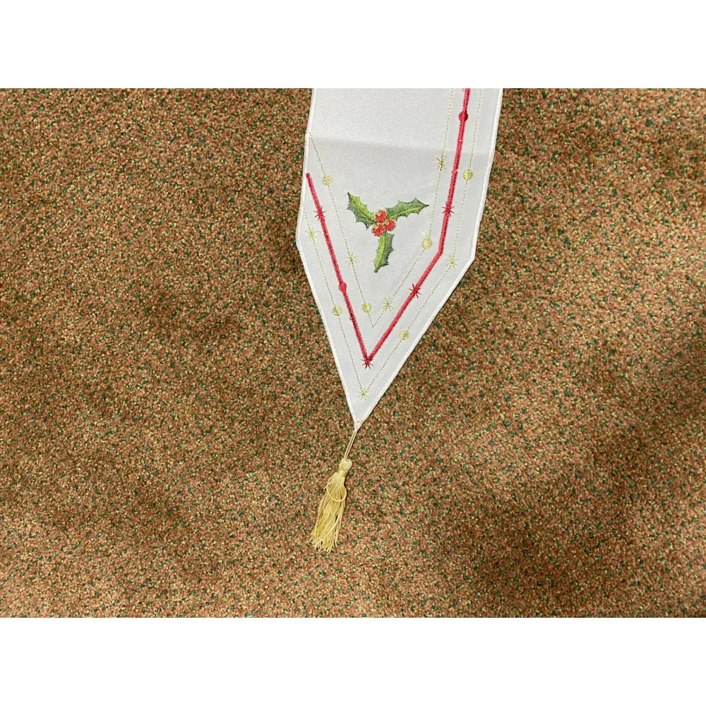 Add a touch of festive cheer to your mantle with the Holly Mantle Runner White with Gold Tassels. This high-quality runner measures 30 x 180cm and features elegant gold tassels. Create a stunning focal point for your mantle with this seasonal piece.