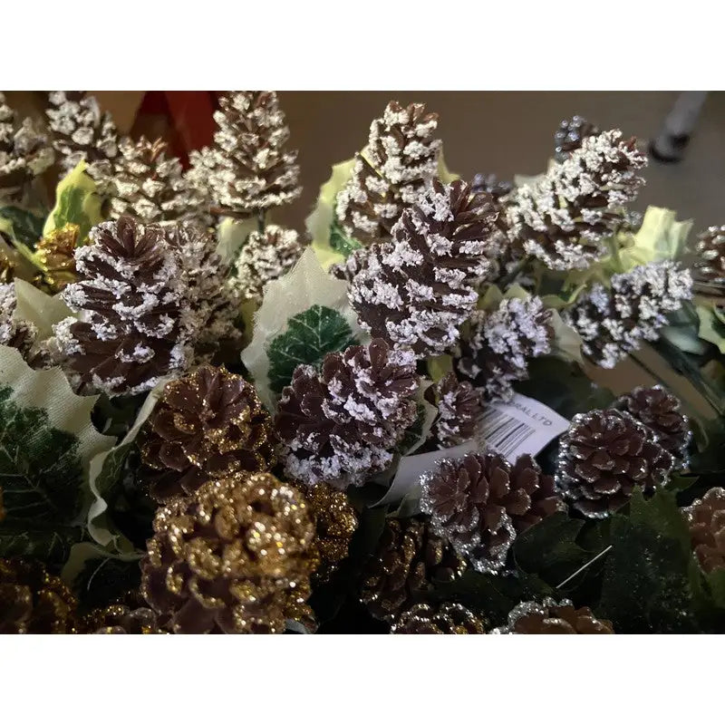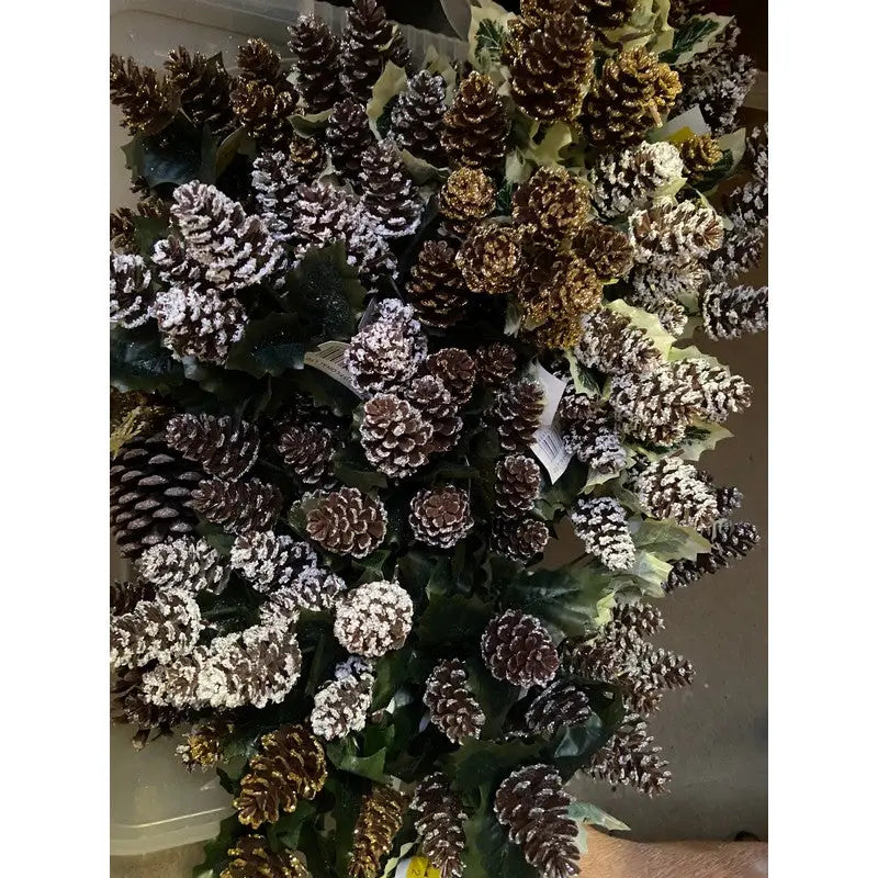 This Holly/Pine Cone pick is the perfect addition for trees, garlands and much more. Its a timeless and stylish piece that you can use every year.
