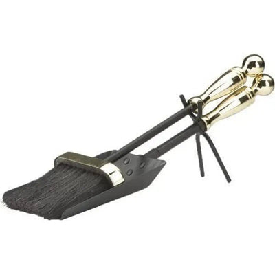 Black & Brass Finish Brush and shovel set with round handles