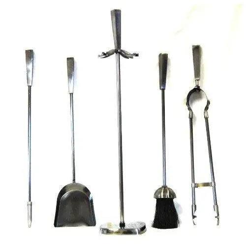 Inglenook Fire 91 - 5 Piece Fireplace Toolset Stand, Shovel, ,Poker, Tongs & Brush - Pewter