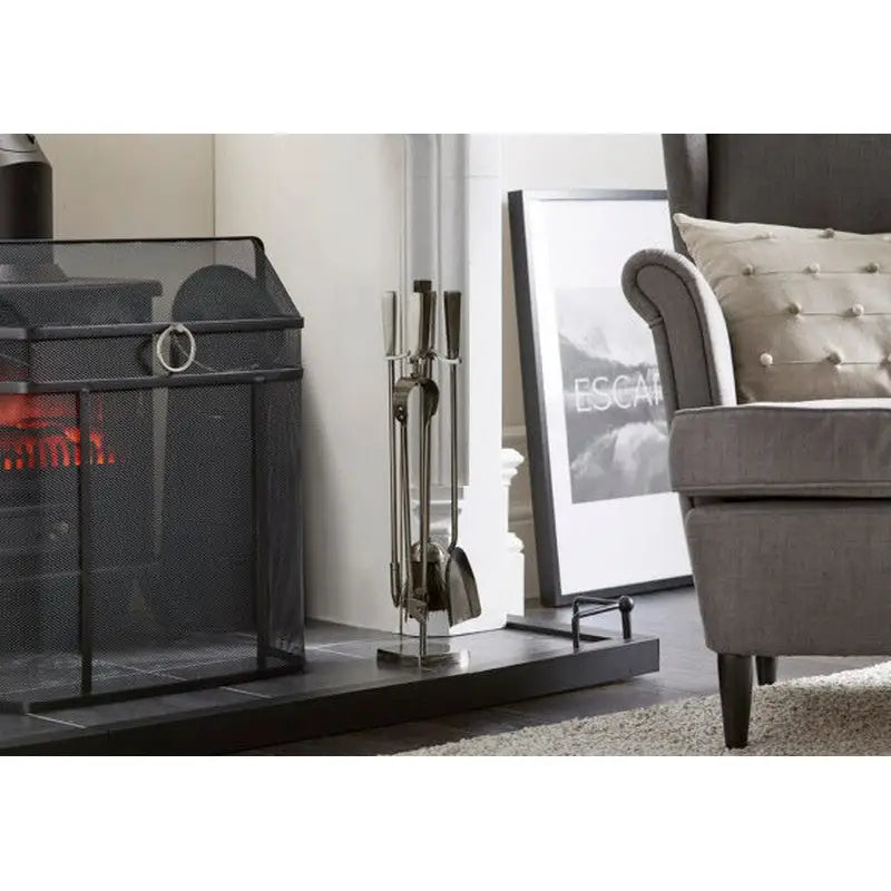 It ‚s squared corners and polished pewter finish mean that it will complement any interior. Contemporary or traditional as will the other products in this family: The  Stainless Steel Fireside Log Holder With Black Feet  and the  Curved Pewter Spark Guard With Hoop For Poker.